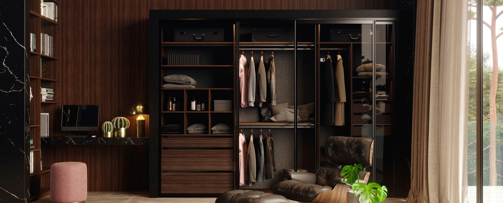 Con un sistema corredizo de diseño exclusivo y perfilería de aluminio, Tecnia combina tecnología y estética en una propuesta versátil. La variedad de materiales disponibles permite adaptarse a múltiples estilos y necesidades, ofreciendo soluciones modernas para espacios exigentes.