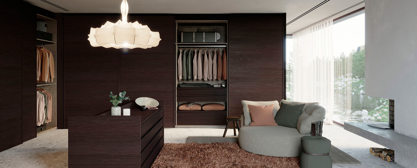 Amplios paños de roble americano enchapado, con veta horizontal y sin herrajes a la vista, dan forma a una propuesta estética depurada y elegante. Disponible en una cuidada variedad de lustres, Veta se destaca por crear ambientes serenos y contemporáneos, donde el diseño y la nobleza de la madera se expresan con sutileza.